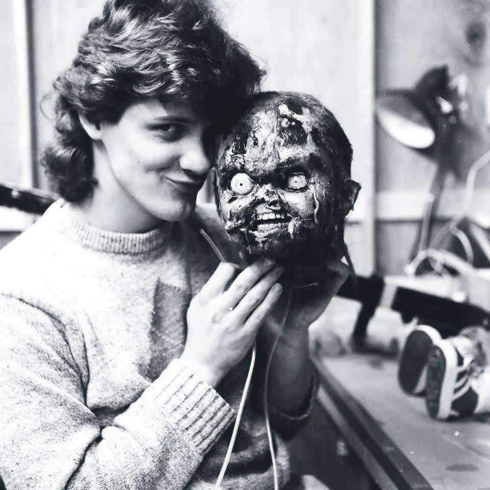 Na imagem podemos ver Kevin Yagher, um dos responsáveis pelos efeitos práticos, brincando com uma de suas criações. Bizarro.